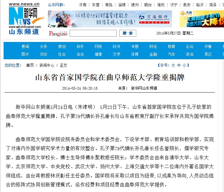 新华网:山东省首家国学院在开云手机入口隆重揭牌