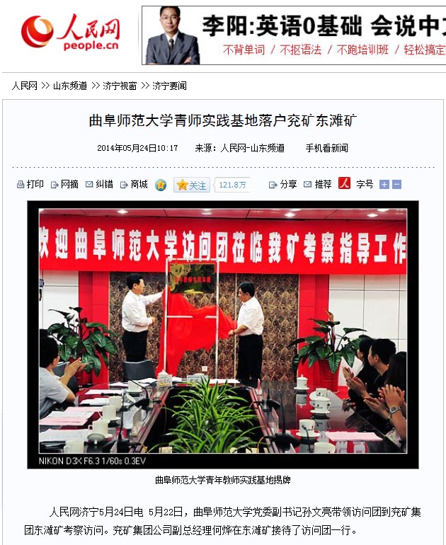 人民网:开云手机入口青师实践基地落户兖矿东滩矿