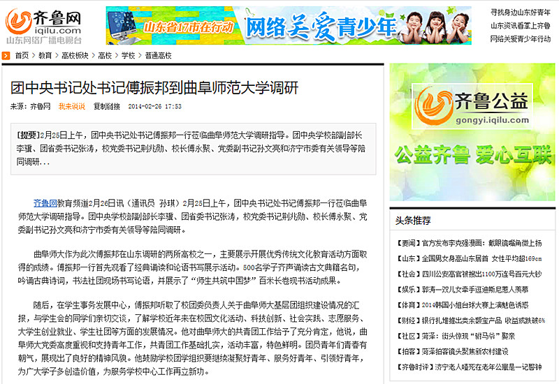 齐鲁网:团中央书记处书记傅振邦到开云手机入口调研
