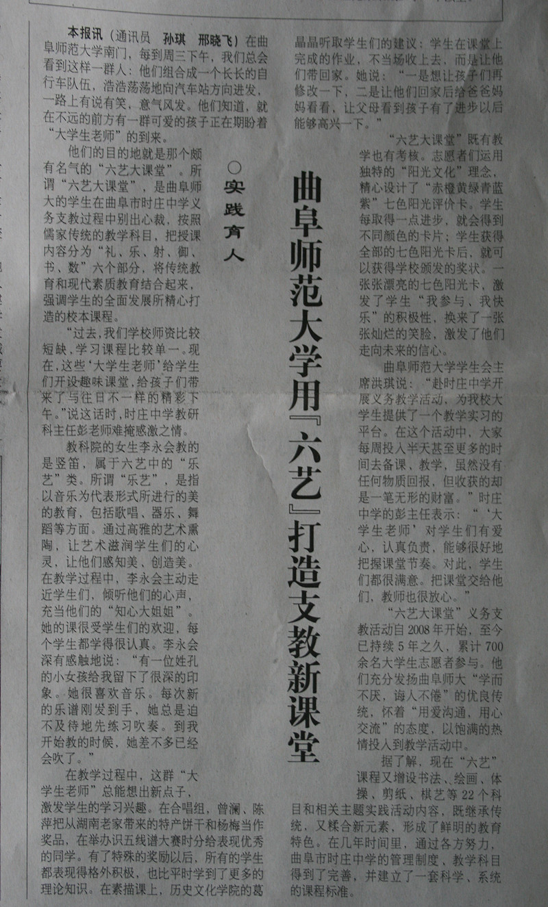 山东教育报:开云手机入口用「六艺」打造支教新课堂