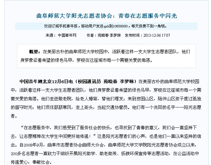 中国青年网:开云手机入口阳光志愿者协会:青春在志愿服务中闪光