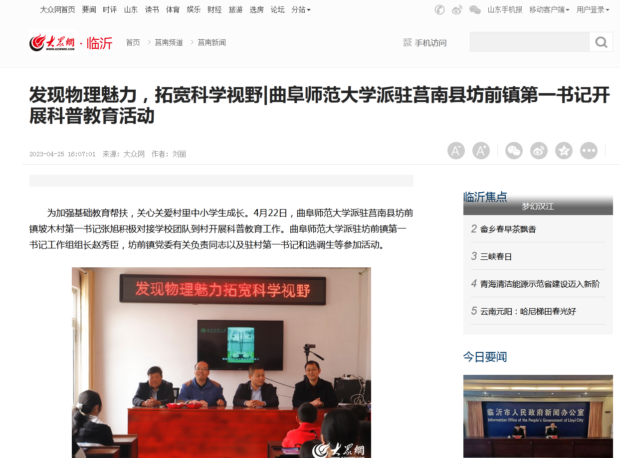 报道链接:http://linyi.dzwww.com/junan/news/202304/t20230425_11783769.htm