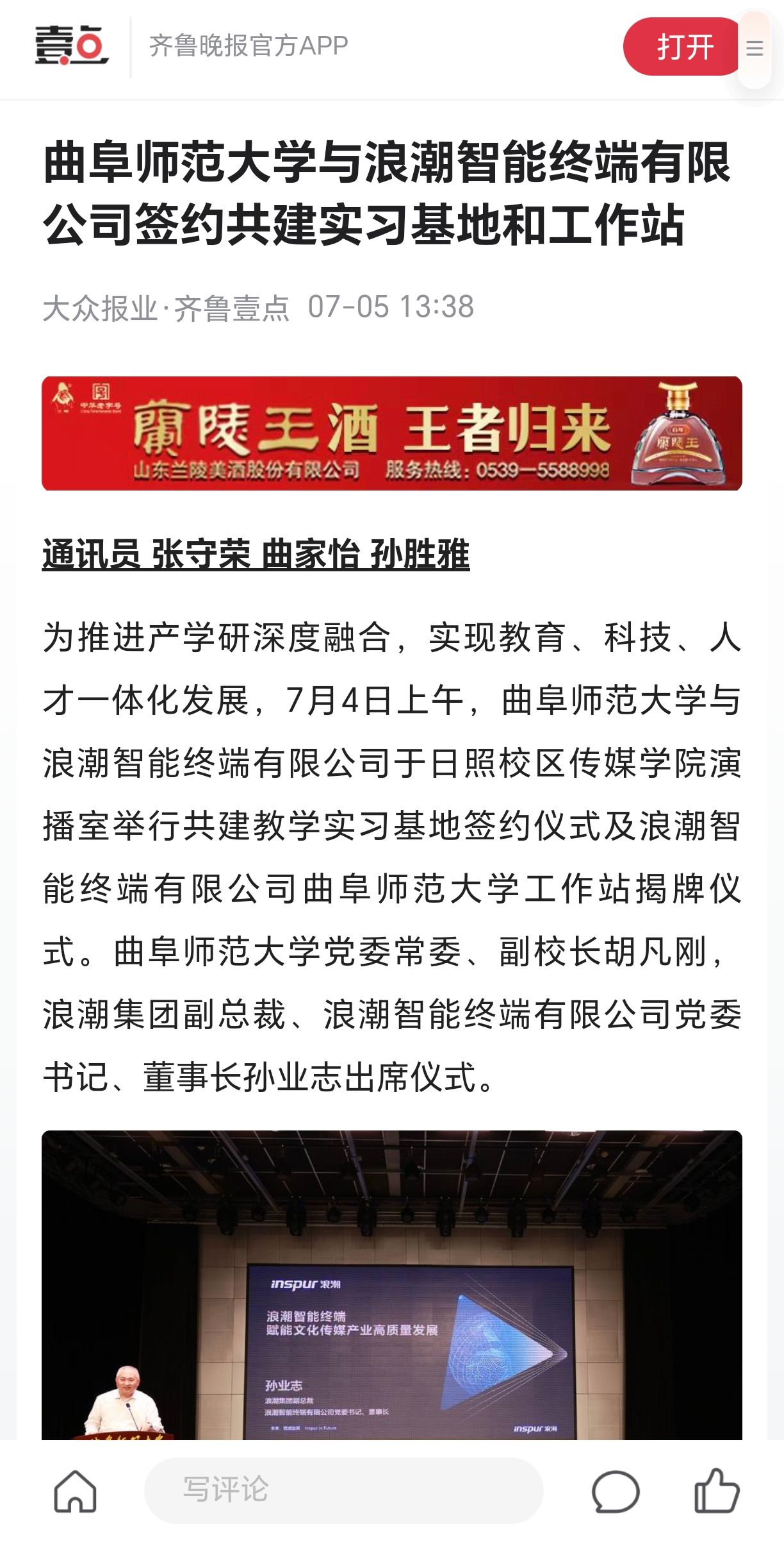 【齐鲁晚报·齐鲁壹点】开云手机入口与浪潮智能终端有限公司签约共建实习基地和工作站