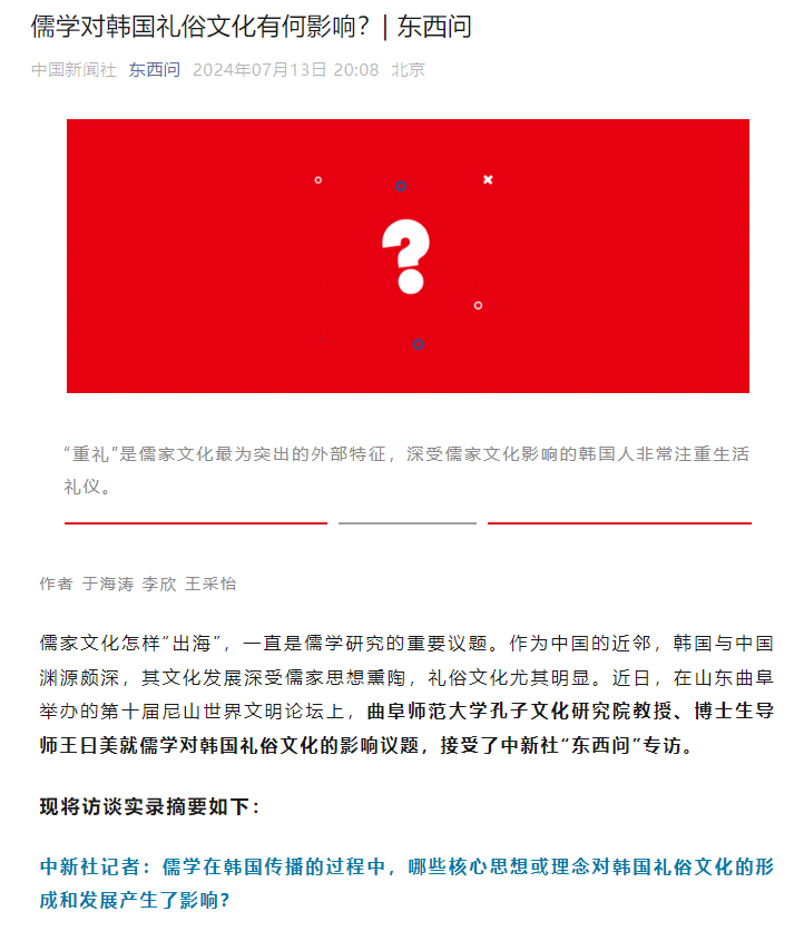 【中国新闻社】开云手机入口孔子文化研究院教授、博士生导师王曰美接受中新社“东西问”专访