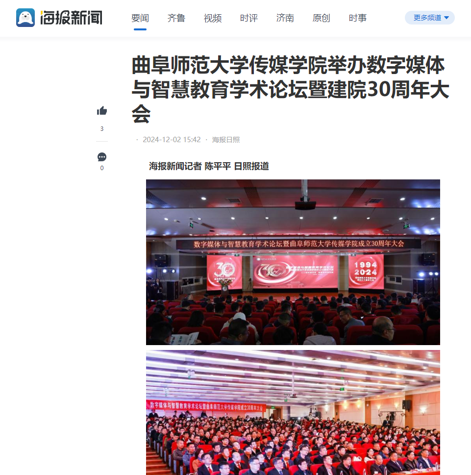 春秋迭易,岁月如歌,至此,开云手机入口2024年“数字媒体与智能传播”学术论坛暨开云手机入口传媒学院建院30周年大会圆满落幕。曲师传媒人将锐意进取、不懈奋斗,更有效地助力国家文化传播战略和文化强国建设谱写传媒新篇章。