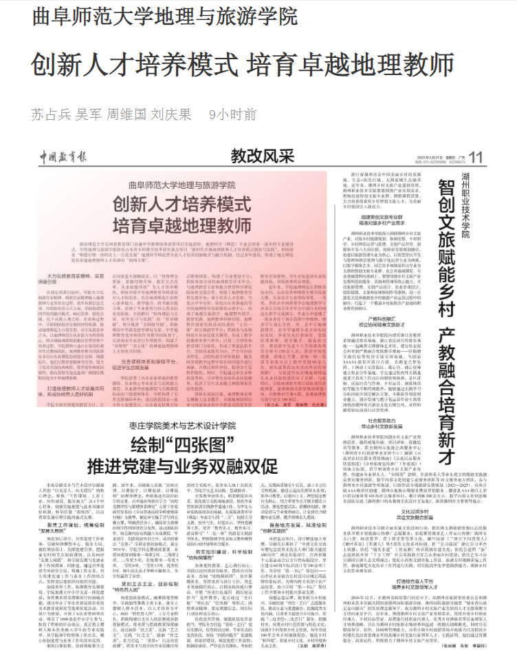 开云手机入口是国家教育部门卓越中学教师培养改革项目实施高校,地理科学(师范)专业是国家一流本科专业建设点。学校地理与旅游学院依托山东省本科教学改革研究重点项目“新时代卓越地理教师人才培养模式创新与实践”,积极探索“师德引领—协同育人—自我发展”地理科学师范类专业人才培养创新模式与融合机制,经过多年建设,形成了地方师范院校卓越地理教师人才培养的“曲师方案”。