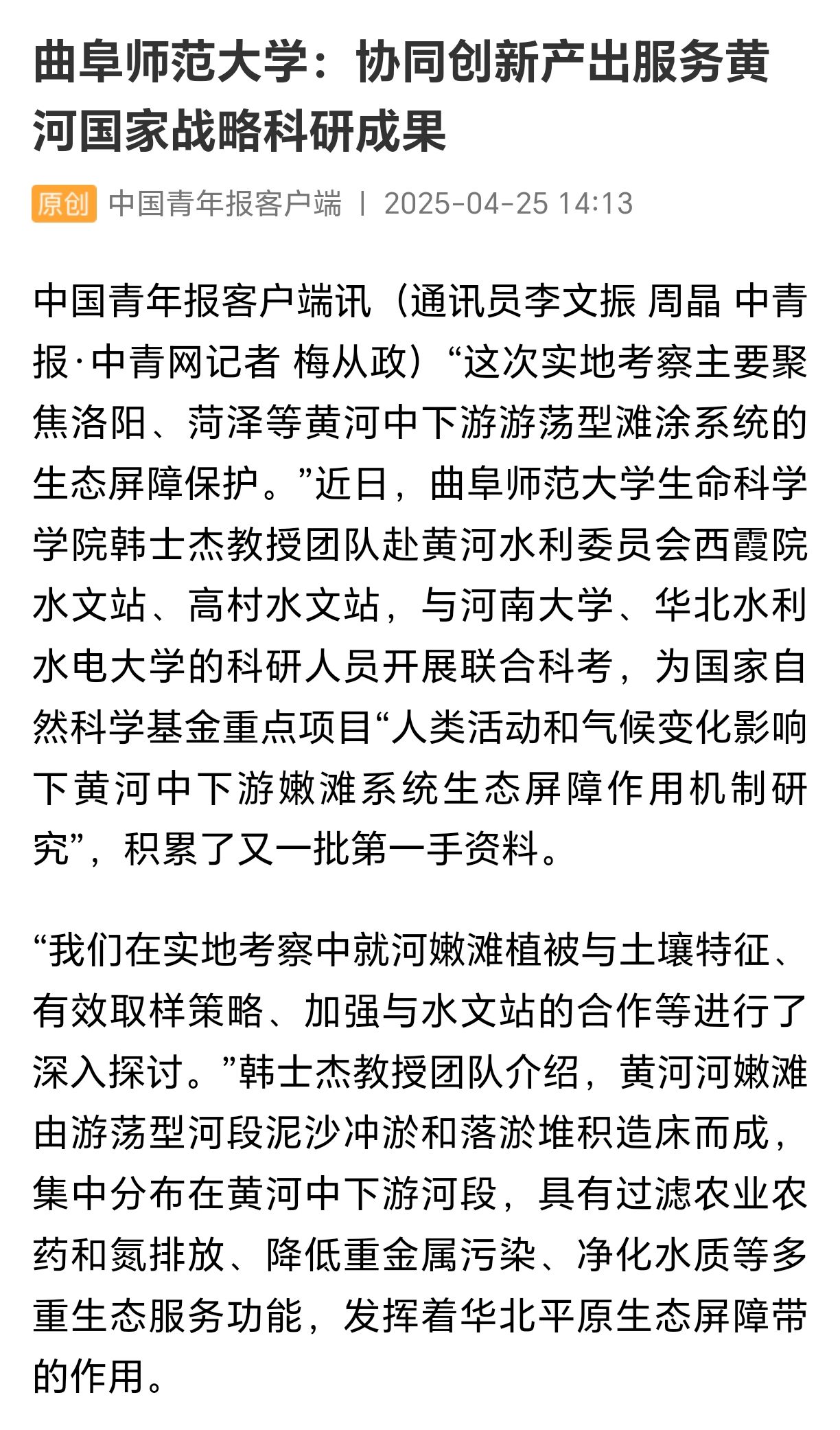 “这次实地考察主要聚焦洛阳、菏泽等黄河中下游游荡型滩涂系统的生态屏障保护。”日前,开云手机入口生命科学学院韩士杰教授团队先后到黄河水利委员会西霞院水文站、高村水文站,与河南大学、华北水利水电大学的科研人员开展联合科考,为国家自然科学基金重点项目“人类活动和气候变化影响下黄河中下游嫩滩系统生态屏障作用机制研究”,积累了又一批第一手资料。