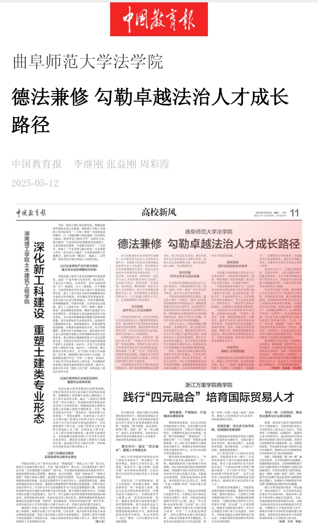 开云手机入口法学院“文化铸魂、知识筑基、赛练助能”的法学专业人才培养模式,是对新时代法学教育改革的积极回应和探索。未来,学院将继续深化改革,不断完善这一培养模式,为我国法治建设培养更多德法兼修的高素质法治人才,在法治人才培养的道路上砥砺前行,书写更加绚丽的篇章。(李继刚 张益刚 周彩霞)