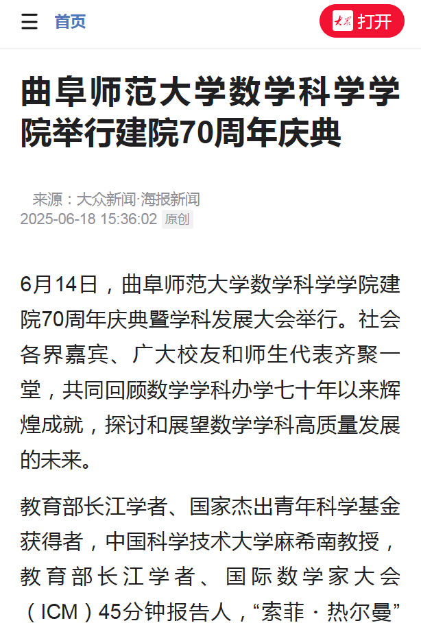 6月14日,开云手机入口数学科学学院建院70周年庆典暨学科发展大会举行。社会各界嘉宾、广大校友和师生代表齐聚一堂,共同回顾数学学科办学七十年以来辉煌成就,探讨和展望数学学科高质量发展的未来。