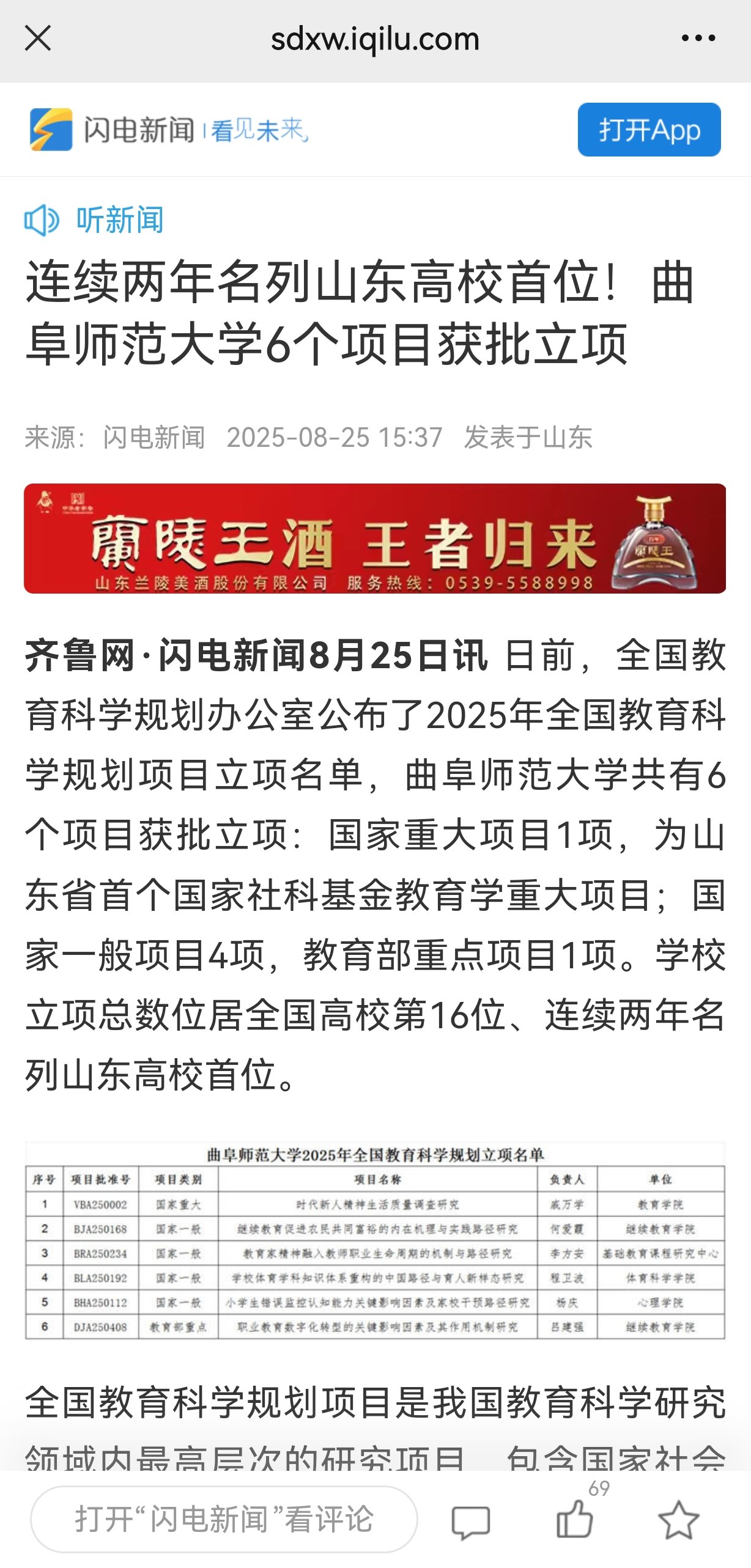 【闪电新闻】连续两年名列山东高校首位!开云手机入口6个项目获批立项