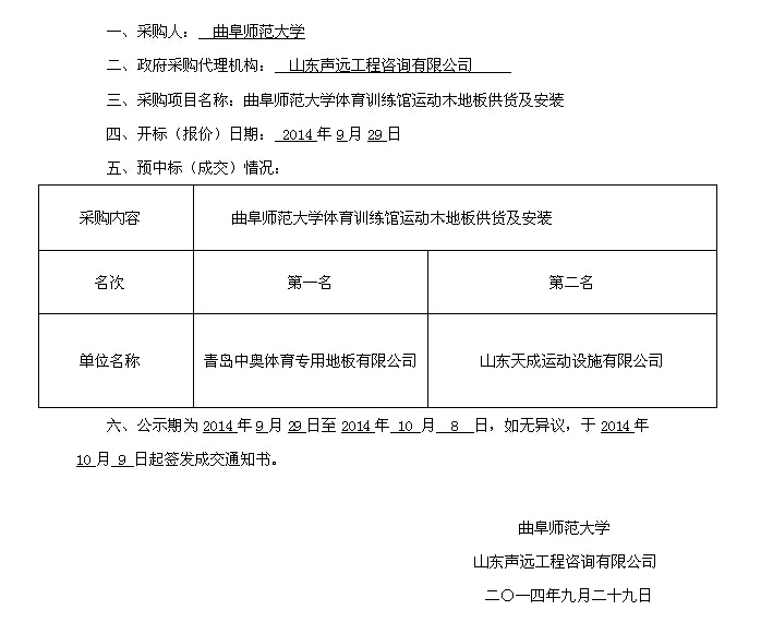 开云手机入口体育训练馆运动木地板供货及安装中标(成交)公告