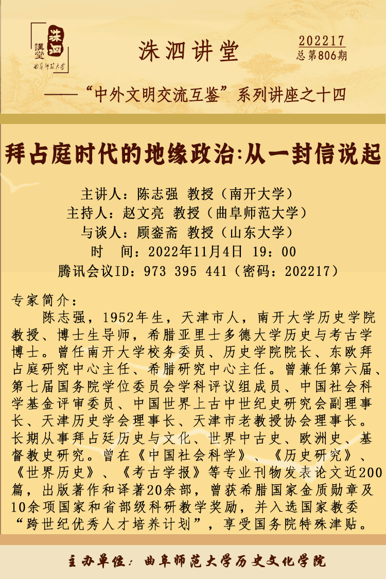洙泗讲堂预告| 陈志强:拜占庭时代的地缘政治:从一封信说起