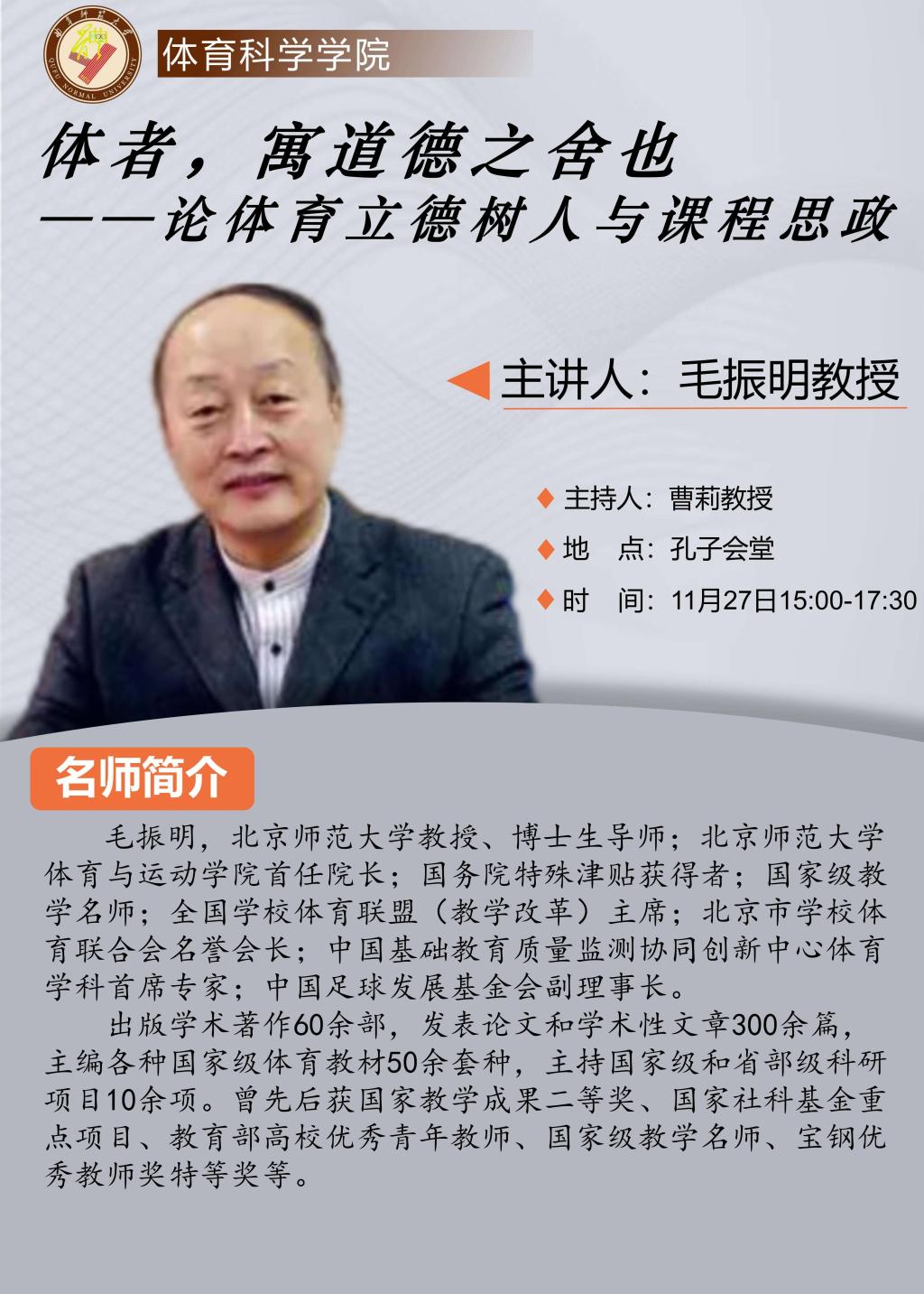 体育科学学院专家报告:毛振明教授学术报告
