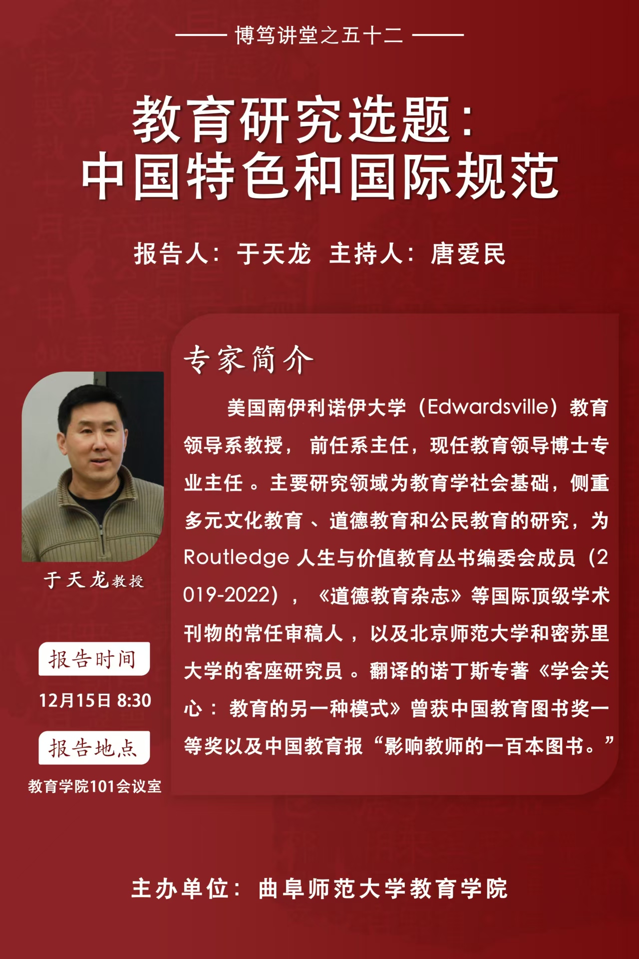 博笃讲堂预告:教育研究选题:中国特色和国际规范