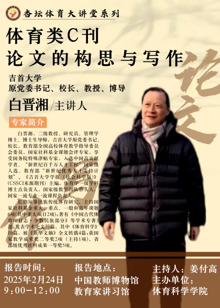 杏坛体育大讲堂预告:体育类C刊论文的构思与写作