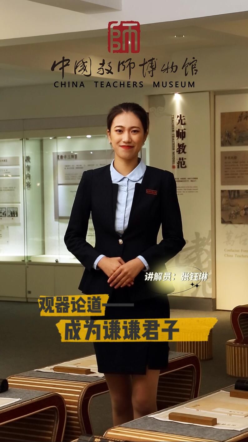 教师博物馆参赛讲解案例《观器论道——成为谦谦君子》由教师博物馆志愿讲解员、历史文化学院学生张钰琳结合中国传统木板印刷技艺、情景展示“观器论道之欹器”设计讲解,结合短视频新媒体,传播了传统技艺,活化了孔子“满招损,谦受益”的思想。