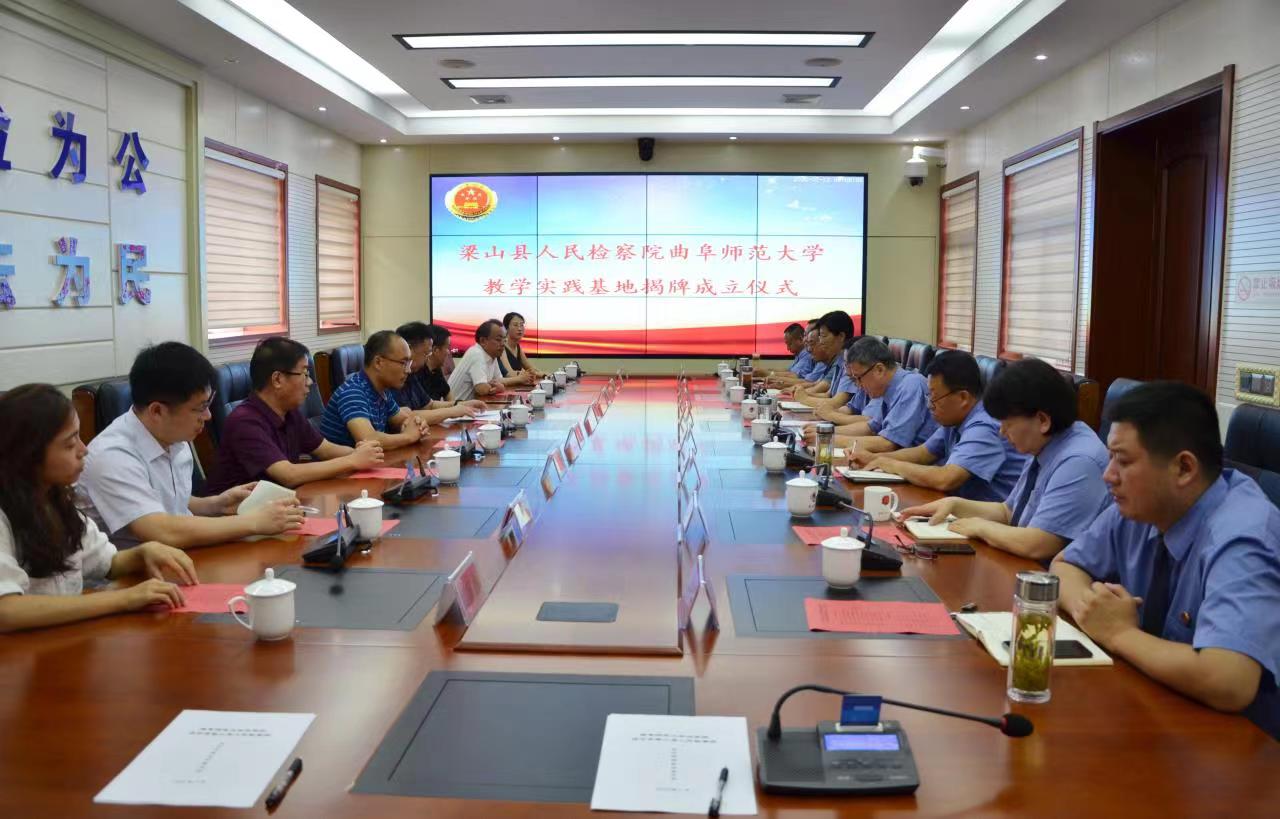 曲阜师大新闻中心讯 7月13日上午,为进一步开展校地合作,助推产学研融合发展以及教学实习基地建设,开云手机入口法学院与济宁市梁山县人民检察院举行校地合作签约揭牌仪式。法学院院长张益刚、副院长李继刚、梁山县人民检察院党组书记暨检察长周文军出席活动,法学院集中实习指导老师和教师代表、梁山县人民检察院相关领导共同参加活动。