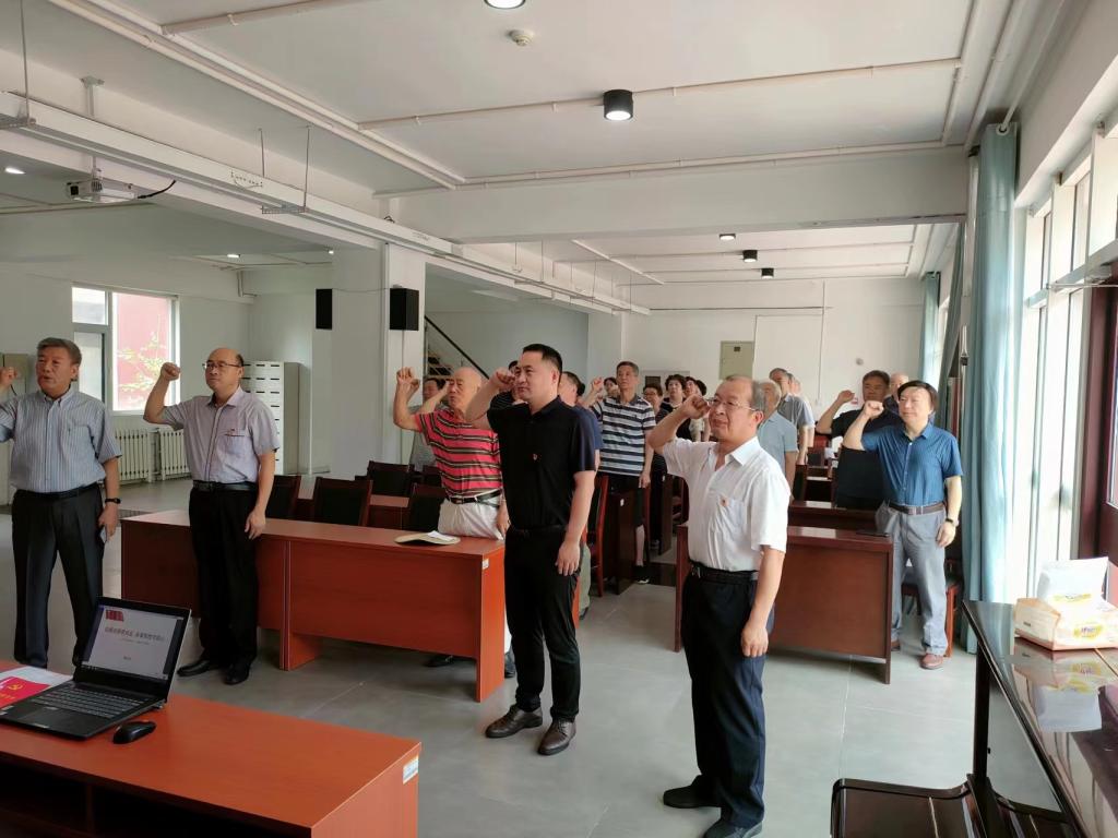 6月29日,离退休党委各党支部举行了迎七一“重温入党誓词 不忘入党初心” 主题党日活动。与会党员一起高举右手,面对鲜红的党旗,再次庄严宣誓:“我志愿加入中国共产党……随时准备为党和人民牺牲一切,永不叛党。”铿锵恢宏的誓词,一字一句,神圣而豪迈,全体党员们再次接受了入党誓词的洗礼,进一步牢记初心使命,坚定理想信念。