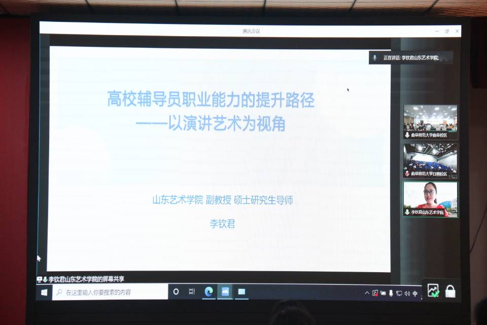 曲阜师大新闻中心讯 (通讯员:曹亚楠  孙立斌  摄影:胡子涵 闫弘乾)6月24日,我校举行全体辅导员培训。此次培训由美术学院承办,邀请山东艺术学院副教授、中华吟诵教学专委会理事、山东省朗诵艺术家协会理事、山东省演讲学会理事、山东传媒职业学院特聘教授李钦君,为全体辅导员做了题为《高校辅导员职业能力的提升路径——以演讲艺术为视角》的报告。活动由学生工作处副处长毛永正主持。