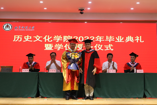 曲阜师大新闻中心讯 花开仲夏,史院情长。6月24日上午,历史文化学院2022年毕业典礼如期举行。学校党委书记、博士生导师戚万学教授应邀出席典礼,并为毕业生代表拨穗正冠、颁授证书、赠送毕业礼物。371名优秀本科生、57名优秀硕士研究生、3名优秀博士生如约齐聚孔子会堂,共赴这场曲园青春之约。