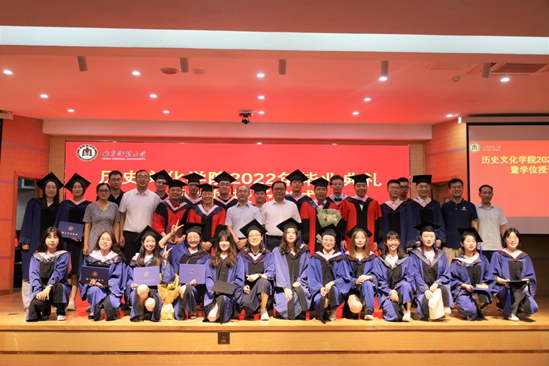 院长吴佩林代表学院向毕业生们送上祝贺与祝愿。他表示,2022届毕业生们在学习科研、创新创业、社会实践等各个方面取得了优异成绩。他勉励毕业生们志存高远、立身行道,铭记“学而不厌、诲人不倦”校训和“博学于文,行己有耻”的院训精神,以曲园人特有的德性、睿性、韧性,将志存高远贯穿于务实笃行中,将雄心壮志落实到脚踏实地上,在驰而不息的奋斗中成就更绚丽的人生。