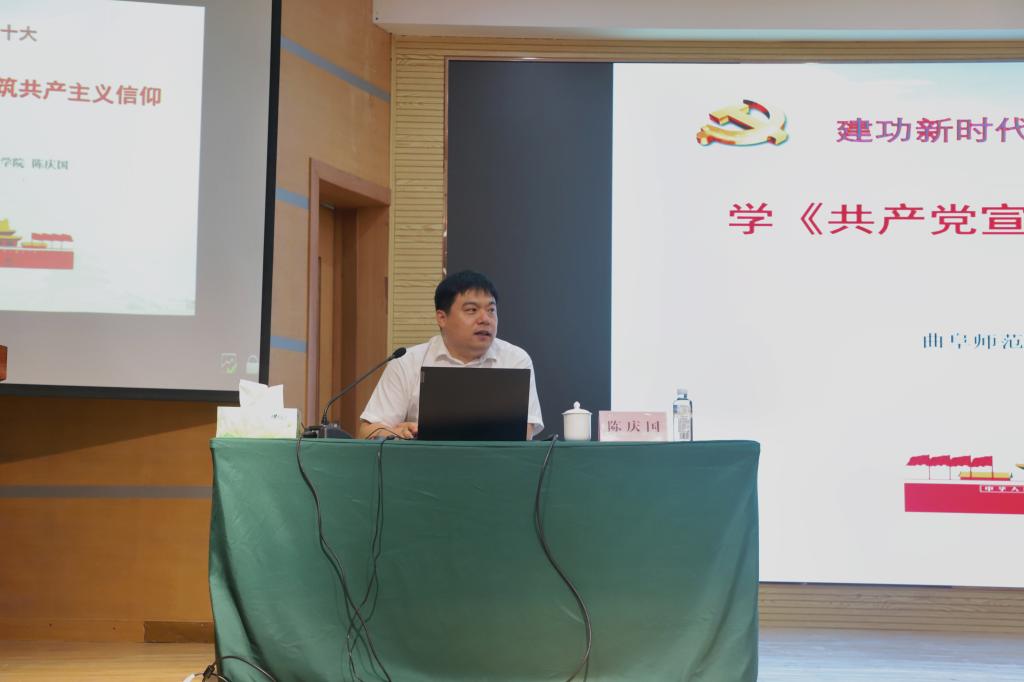 曲阜师大新闻中心讯 (通讯员:曹亚楠 摄影:梁海健 闫弘乾)6月2日,曲阜师大举行全体辅导员培训,邀请马克思主义学院党委书记陈庆国,做了题为《学<共产党宣言>,筑共产主义信仰》的报告。本次培训由马克思主义学院承办,学生工作处副处长毛永正主持。
