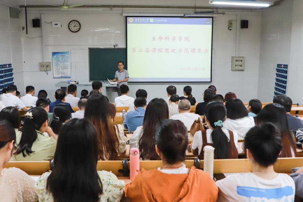 曲阜师大新闻中心讯(通讯员:刘彦彦  罗珊  吕晓正)  为进一步推进课程思政工作,5月25日下午,生命科学学院举办第二届课程思政示范课展示活动。学院党委书记李志广、院长王仁君、党委副书记张明洁、院长助理燕艳、第二届课程思政示范课展示教师以及学院全体专任教师参加了活动。