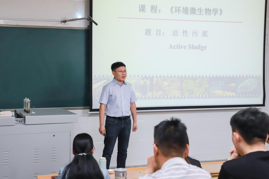 随后,高配科、陈峻峰和谢广龙三位老师分别为大家带来课程思政示范课展示。高配科老师在讲授活性污泥的产生过程中运用古诗词生动描述其具有污水处理能力特性,并结合污水产生的来源倡议同学们自觉减少生活污水,牢记“绿水青山就是金山银山”的生态理念。陈峻峰老师在讲授石墨烯的制备与应用时以神舟十三号载人飞船的成功发射为案例,引导同学们关注先进材料技术和国家战略资源的重要意义,鼓励同学们紧跟科技前沿、立志科技报国。谢广龙老师讲授贝壳的结构及形成时引用《天工开物》中关于珍珠记载描述,激发大家对传统文化的兴趣,同时结合珍珠的产生过程启示同学们在成才过程中要不惧磨砺、化艰难困苦为成长财富。