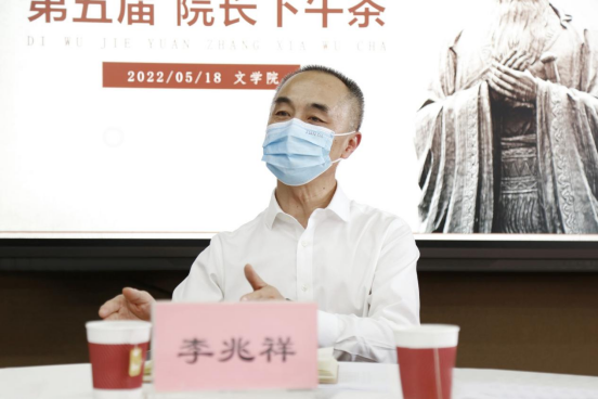曲阜师大新闻中心讯(通讯员:冯萌萌   摄影:孙盈盈   孙晓伟) 为进一步贯彻“以本为本”“学生中心”的教育理念、深化学院新文科背景下汉语言文学和戏剧影视文学国家级双一流本科专业内涵建设,擦亮学院本科教育金字品牌,践行立德树人、为国弘文的从教初心,5月18日下午,文学院第五届“倾听青春拔节的声音——院长下午茶”师生恳谈活动举行。副校长李兆祥教授,文学院党委书记左兴才,院长夏静教授,党委副书记曲媛媛,副院长杨新刚教授,国家语言文字推广基地副主任霍俊国副教授,教师代表冯萌萌、孙晓伟与文学院学生代表手捧一杯香茗,围坐一起,畅所欲言,交流大学的学习与生活。