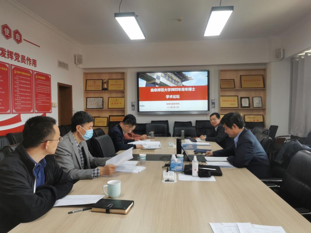 曲阜师大新闻中心讯 4月10日,曲阜师大地理与旅游学院通过线上形式举行了2022年度青年博士学术论坛。本次论坛邀请12位来自中国科学院大学、武汉大学、兰州大学、南京师范大学、华东师范大学、上海师范大学和福建师范大学等不同高校和科研院所的青年博士和博士后进行了学术交流,学院党委书记苏占兵、院长张全景、副院长于伟、学校黄河生态研究院副院长李宝富、教授代表荆延德、王萍、郭浩等,在主会场出席会议。