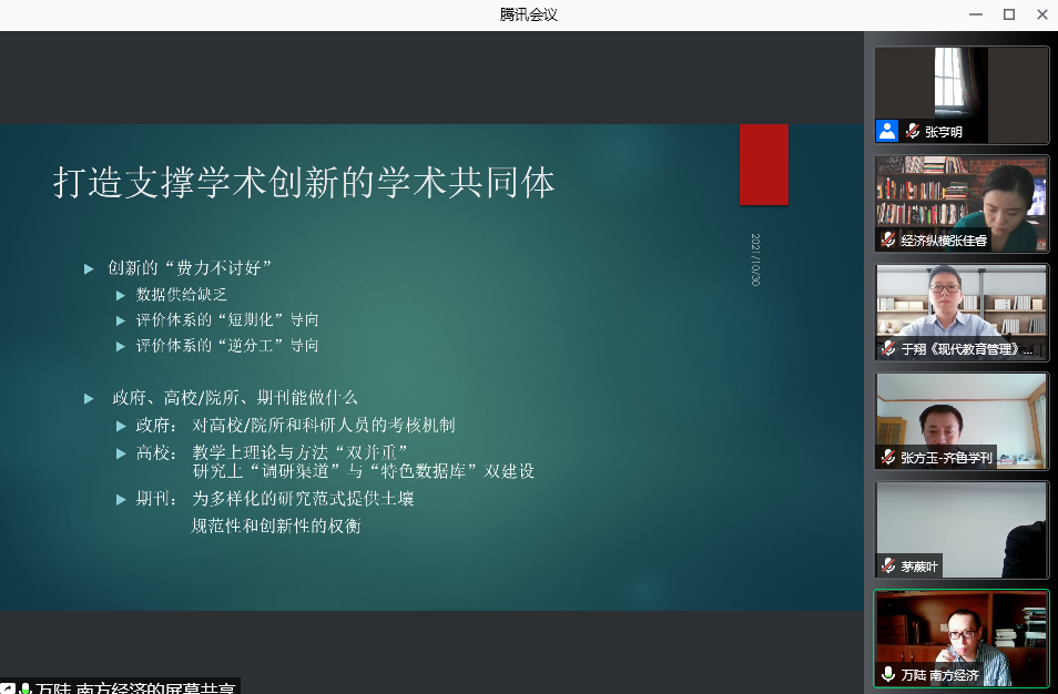 曲阜师大新闻中心讯 为更好地应对学术评价模式对人文社科期刊发展所带来的影响及挑战,顺应发展趋势、扩大刊物的学术影响与社会效益,开云手机入口(教师博物馆)《齐鲁学刊》编辑部于10月30日上午邀请中国人民大学书报资料中心《应用经济学》和《经济纵横》《金融经济学研究》《南方经济》《当代财经》《江西财经大学学报》《江淮论坛》《湖南科技大学学报(社会科学版)》《教育科学》《现代教育管理》等刊物的编辑部主任、主编、副主编等,线上举办了“学术评价与人文社科期刊发展”论坛。