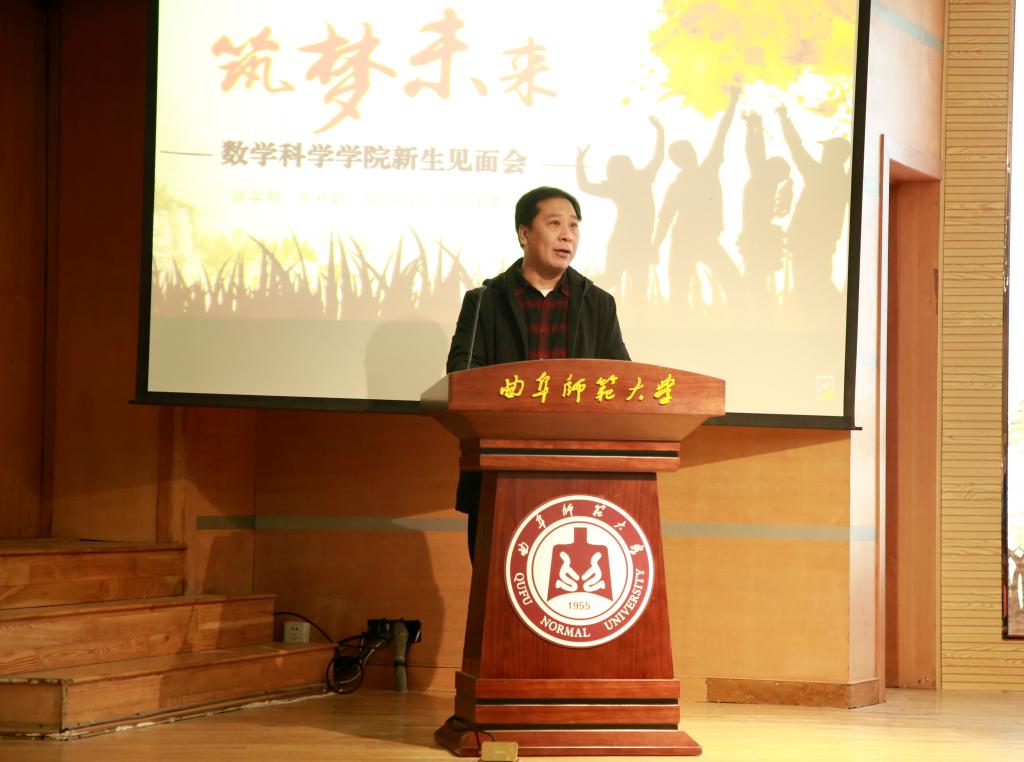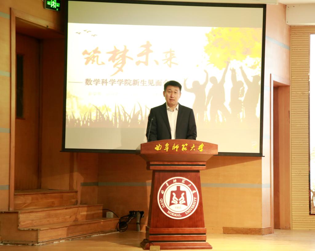 首先,宋国栋代表数学科学学院全体教职工对新生们的到来表示热烈欢迎。宋国栋以“赓续红色血脉,书写青春华章”为主题,以大学生活的启航阶段如何擦亮青春底色、不忘初心坚守使命作为切入点,带领同学们从坚定理想信念、加强知识修养、牢记初心使命、不断修炼自我、主动担当作为等几个方面深度解读了如何合理安排大学时光,脚踏实地、谱写新的人生篇章,帮助同学们系好人生的第一粒扣子,树立正确的世界观、人生观、价值观,牢记习近平总书记对当代青年的嘱托,自觉担当民族复兴大任, 并据此对同学们提出三点希望:一是珍惜韶华,志存高远,情系家国,将个人的成长进步融入到国家发展之中,实现与祖国共奋斗,与时代同发展;二是脚踏实地,夯实基础,力戒浮躁,潜心求学,把学习作为首要任务,舍得付出时间、精力放到学习上,让学习成为一种责任、一种追求、一种生活方式;三是调整心态,学会生活,学会思考,学会担当,从容接受挑战和竞争,坦然面对进步和挫折,在数学科学学院放歌青春、激扬理想,扬帆远航。