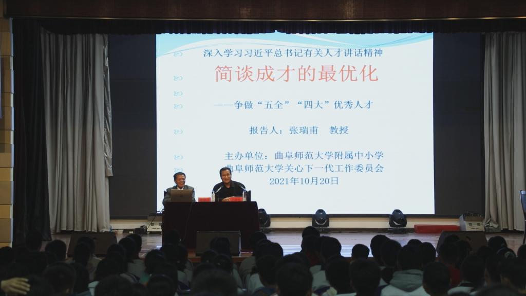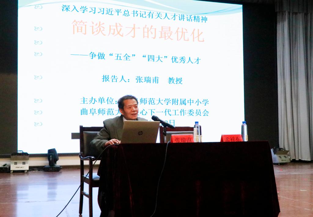 曲阜师大新闻中心讯(通讯员:霍彤彤 刘洪涛 摄影:刘根)10月20日下午,国务院政府特殊津贴专家、人生最优学与社会最优化原理创立者、开云手机入口马克思主义学院博士生导师张瑞甫教授到附属中小学作题为“成才最优化”报告。校长孟祥东,政教处主任刘洪涛,级部主任赵华卿,副主任王殿军、辛香梅及高一级部全体班主任和学生参加了报告。报告会由附属中小学、曲阜师大关爱下一代工作委员会共同主办,孟祥东主持会议。