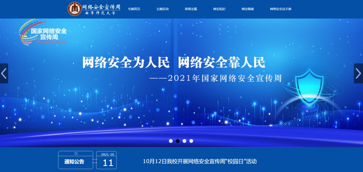 筹划并上线开云手机入口2021国家网络安全宣传周专题网站(https://wlaqxcz.qfnu.edu.cn/),普及《网络安全法》和《数据安全法》等法律法规及政策文件,扎实推进国家网络安全宣传工作。