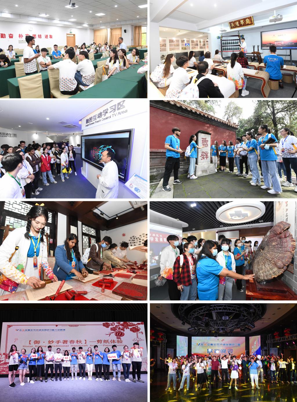 闭营式上,播放了回顾研习营走访圣城与泉城各地的视频短片。为期四天的交流中,营员们在孔庙孔府感受中华文明源头的千年底蕴;在太阳纸业、尼山鹿鸣见证现代科技手段对于绿色低碳、永续发展的贡献;在孔子博物馆、教师博物馆,读懂博物馆里的中国,共同发出绿色发展青年倡议“养君子之风 践大道之行”;在生物标本实验室聆听湿地专家讲授淡水贝类人工繁育对生态环境的贡献,通过虚拟仿真实验、3D全息投影等技术直观了解微山湖物种保护的现状;在汉字记忆空间缝制宋代四目线装书和传拓瓦当的工艺;在省中医院验证中医的疗效……营员们不仅加深了对绿色中国的了解,还学习了书本中学不到的知识,收获了亲如家人的浓浓友情。一个个精彩瞬间,一段段难忘时刻,令人留恋不舍。