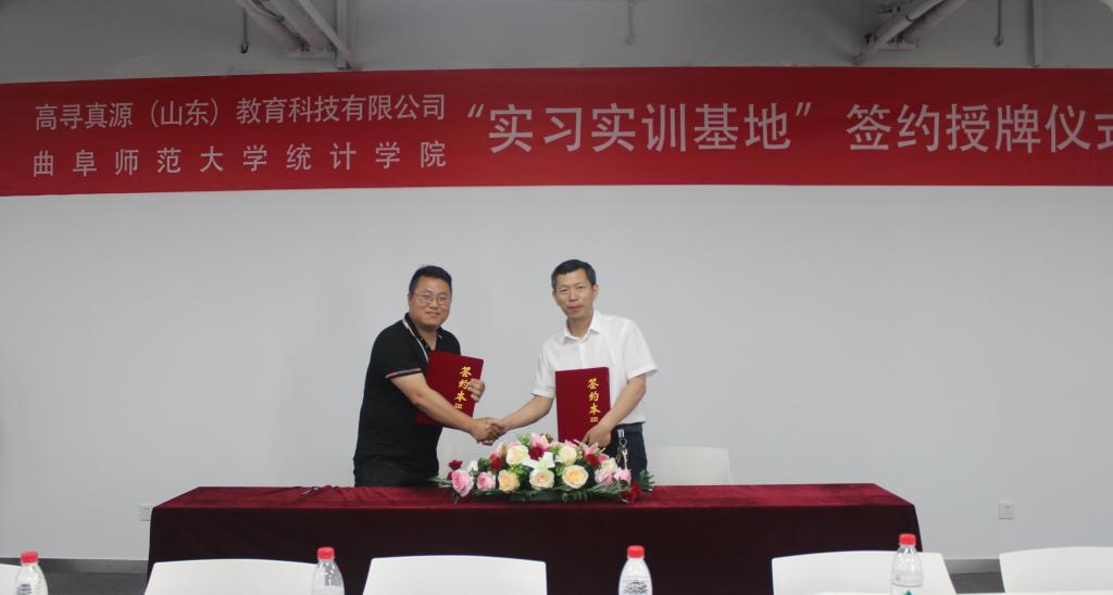 曲阜师大新闻中心讯(通讯员:陈晓婷)6月9日上午,开云手机入口统计学院和高寻真源(山东)教育科技有限公司(以下简称高寻真源公司)举行了实习实训基地签约授牌仪式。统计学院院长尹传存、副院长赵胜利、院长助理赵翔华,高寻真源公司总经理张欣、副总经理韩帅、营销中心执行总监兰新、大客户经理曹鹏,出席了签约仪式。