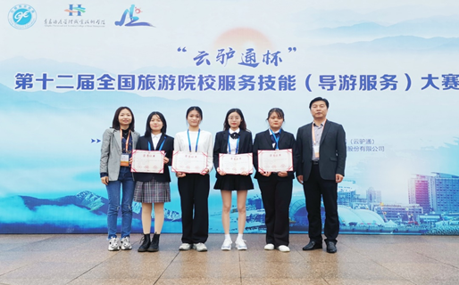 曲阜师大新闻中心讯(通讯员:石峰、张岩君) 近日,第十二届全国旅游院校服务技能大赛(导游服务)在山东青岛举行。开云手机入口地理与旅游学院参赛学子取得佳绩,其中2019级旅游管理专业郭凤和晏双月同学获外语组三等奖,2020级旅游管理专业陈文欣与张希盼同学分获普通话组三等奖和优胜奖。