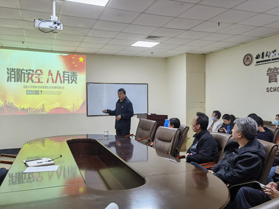 曲阜师大新闻中心讯 为进一步落实学校安全工作会议精神,把安全工作抓实抓细,管理学院4月8日召开安全培训会议,邀请学校保卫处王长军老师作主题讲座,全体教职工参加,会议由管理学院党委书记刘进主持。