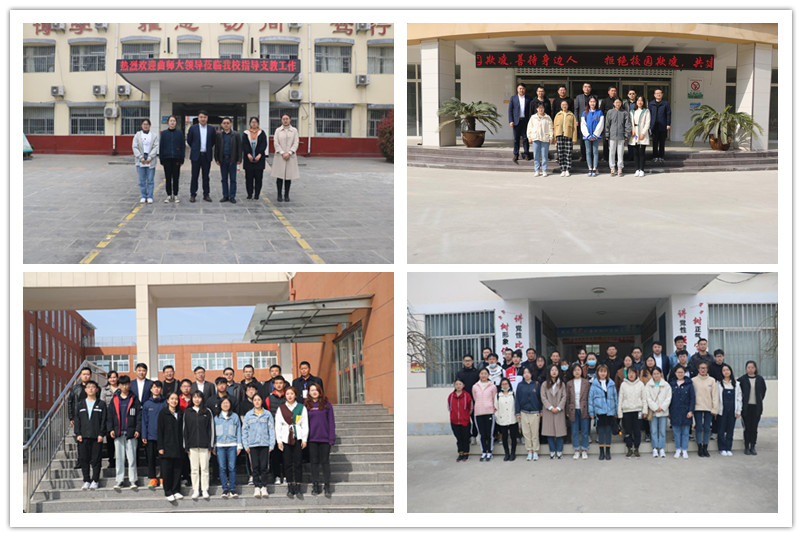 曲阜师大新闻中心讯(通讯员:徐腾飞 摄影:赵文彬)3月24日至26日,外国语学院党委书记费沂涛、党委副书记王作茂、教师伊纪昌、辅导员赵文彬与数学科学学院党委副书记曲凤东、辅导员徐腾飞等前往济宁市鱼台县和金乡县的17所中小学校共同看望指导我校实习支教学生,实地了解学生的实习教学状态,帮助学生解决工作及生活困难,落实落细学校实习实训管理责任。