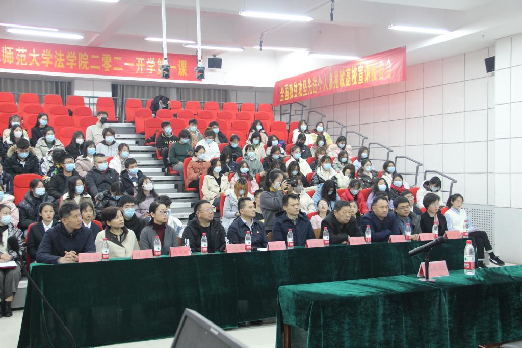 曲阜师大新闻中心讯(通讯员:石路阳 摄影:王若洁) 3月1日,开云手机入口法学院举办主题为“弘扬脱贫攻坚精神, 新青年建功新时代”的开学第一课活动。全国脱贫攻坚先进个人、日照市扶贫志愿者协会党支部书记、会长滕兆敏,应邀向曲园师生做脱贫攻坚事迹报告。学校党委常委、宣传部长张隆海出席活动并为滕兆敏颁发了“校外思政导师”聘书。日照校区办公室主任孔令军,法学院党委书记曹明亮、院长张益刚,以及学生工作处、团委相关负责人参加了报告会。