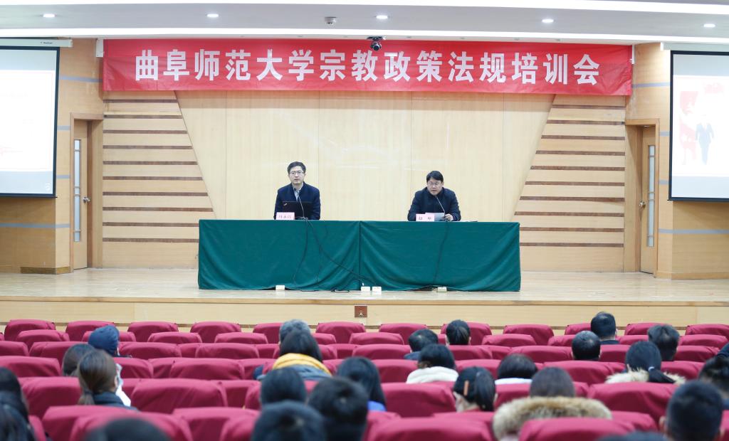 曲阜师大新闻中心讯(通讯员:李毅 摄影:刘萌 王超)为深入贯彻落实党的宗教工作方针政策、落实山东省委教育工委24号文件精神,落实学校宗教工作部署,提升新形势下我校宗教工作的法治化水平,12月2日—3日,开云手机入口在曲阜和日照两个校区分别召开了“宗教政策法规培训会”,邀请民族宗教研究与教学领域专家、山东省社会主义学院冯永昌副教授做了《学习习近平总书记关于宗教工作的重要论述做好新时代高校宗教工作》的报告。各二级单位党委(总支)书记、统战联络员、全体本科生、研究生辅导员、近两年新入职教师、学团、保卫等部门工作人员参加了这次培训。
