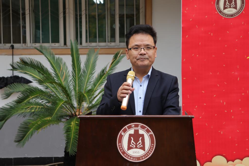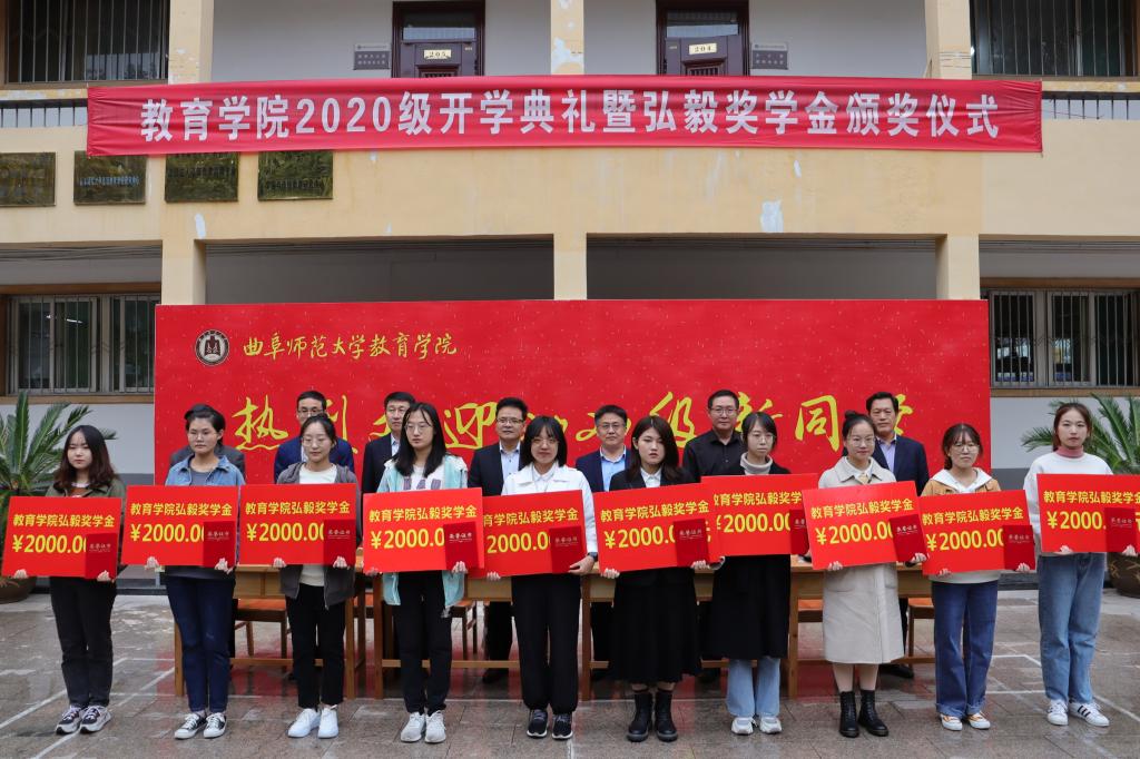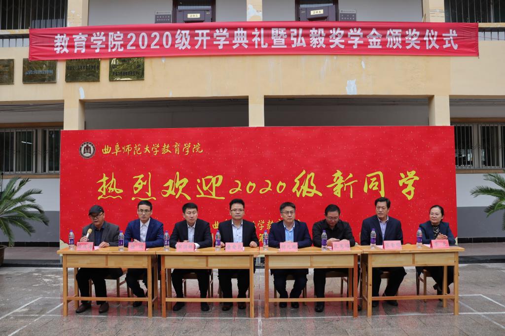 曲阜师大新闻中心讯(通讯员:林梦翠)10月14日下午,教育学院2020级新生开学典礼暨弘毅奖学金颁奖大会在教育学院楼前广场隆重举行。出席本次典礼的有学校教务处处长胡凡刚、国内合作处处长孔宪福、校团委书记宋国栋,院长唐爱民、党委副书记徐庆海、副院长张奎明、副院长徐瑞,院部分教师和在校生代表,2020级全体本科生生。本次会议由教育学院党委副书记徐庆海主持。