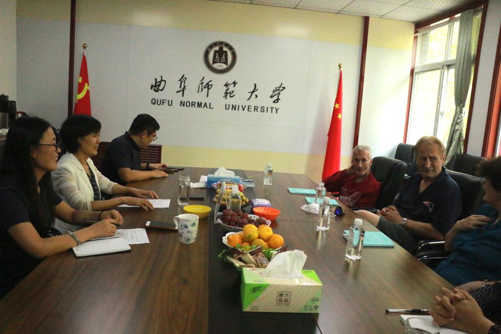 曲阜师大新闻中心讯 新学期伊始,学校全面复工复课,各项工作步入正轨。为了深入了解外籍教师的工作生活状况,加强与他们的沟通,增进彼此的感情,9月28日下午,国际交流合作处举办新学期外籍教师茶话会暨工作座谈会,曲阜校区的三位外籍教师Ann Magrath Streeter、Roger Louis Lambert III、Clint Harry Glover 和我处曲阜校区全体同志一起进行了座谈交流。