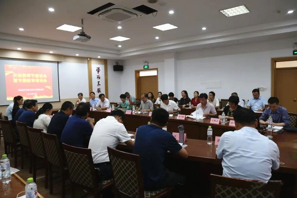 曲阜师大新闻中心讯(通讯员:倪芳芳)9月5日,在第36个教师节即将到来之际,民进济宁市委与曲阜师大党委统战部合作,在曲阜师大举办了庆祝教师节系列活动,市政协副主席、民进市委主委李良品,民进市委驻会副主委汪林、副主委李玲、秘书长张学鹏及市委成员出席会议,各支部负责同志和教育界会员代表近50人参加了活动。民进曲阜师大基层委员会主委吴兆灵、上届主委李绍强及部分会员参加了活动。