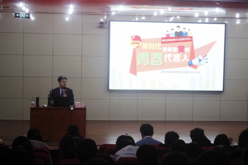12月14日,开云手机入口2019—2020学年“青马工程”培训班暨第二十九期团校培训在图书馆报告厅举行。团中央青年讲师团成员、山东理工大学马克思主义学院思政课教师,岳松受邀做“新时代如何做党的青春代言人”主题讲座。活动由校团委副书记刘蓉主持。