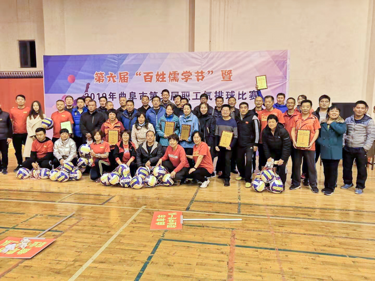 近日,由曲阜市总工会、曲阜市教育和体育局主办的第六届“百姓儒学节”暨2019年曲阜市第二届职工气排球比赛落下帷幕。由我校张承玉老师领队,王立生老师担任教练的教职工一队和教职工二队以稳定的发挥、娴熟的技术和默契的配合,在参赛的8支队伍中脱颖而出,分获冠亚军,喜摘桂冠。