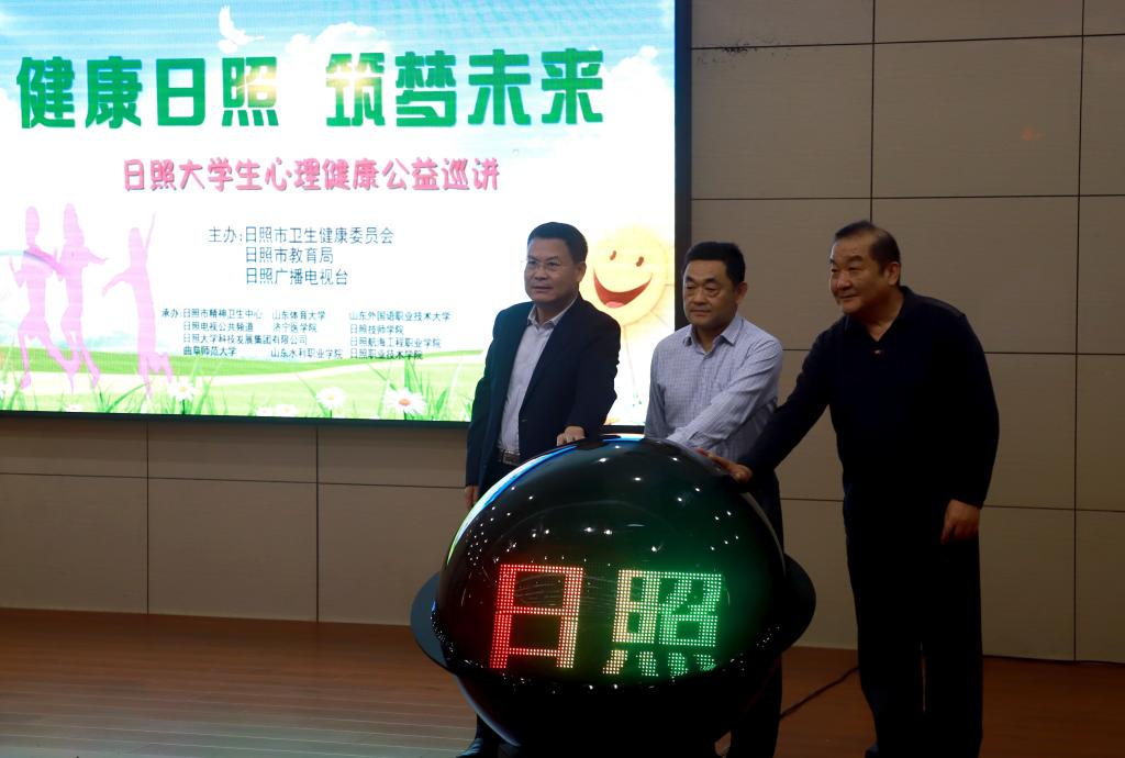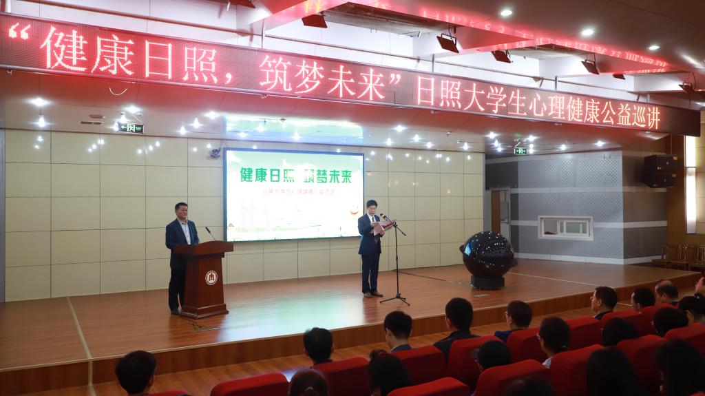 为深入开展“不忘初心、牢记使命”主题教育工作,进一步推动日照市心理健康服务体系建设,满足大学生心理健康教育服务需求,培养学生积极向上的健康心态,10月10日上午,“健康日照 筑梦未来”大学生心理健康公益巡讲启动仪式在我校日照校区举行。活动由日照市卫生健康委员会、日照市教育局、日照广播电视台主办,日照市精神卫生中心、日照电视公共频道以及开云手机入口等8所驻日照高校共同承办。启动仪式由市精神卫生中心党总支书记安晓东主持,市卫健委、市教育局、市广电相关领导,以及驻日高校相关领导共同出席活动。