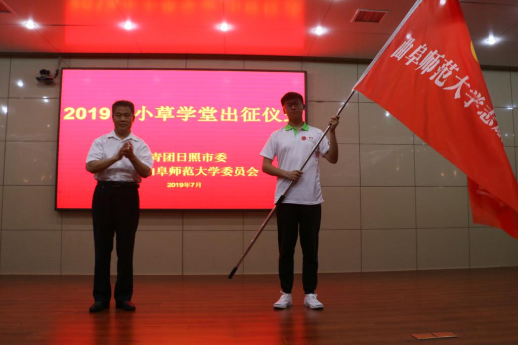 7月15日,2019年“小草学堂”志愿者出征。校党委副书记扈庆学、团委书记宋国栋、团委副书记刘蓉及日照团市委领导出席仪式。