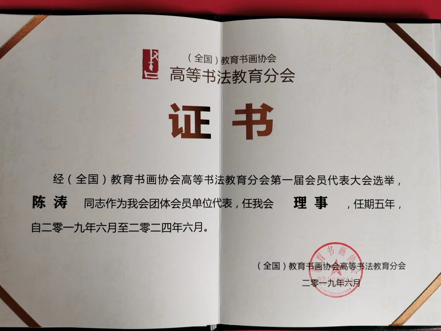 会上,我校书法学院入选为全国教育书画协会高等书法教育理事单位,学院常务副院长陈涛当选为全国教育书画协会高等书法教育分会理事。
