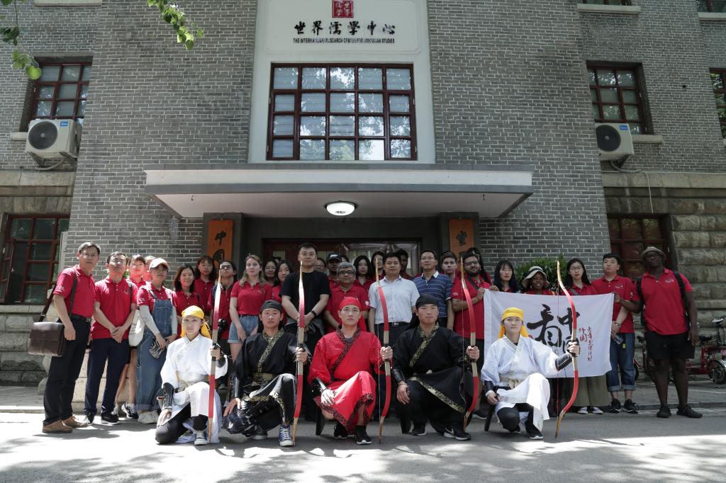 6月4日,“看中国•外国青年影像计划•山东行”活动中外双方指导教师、外国青年导演和志愿者来我校开展儒家文化体验活动。